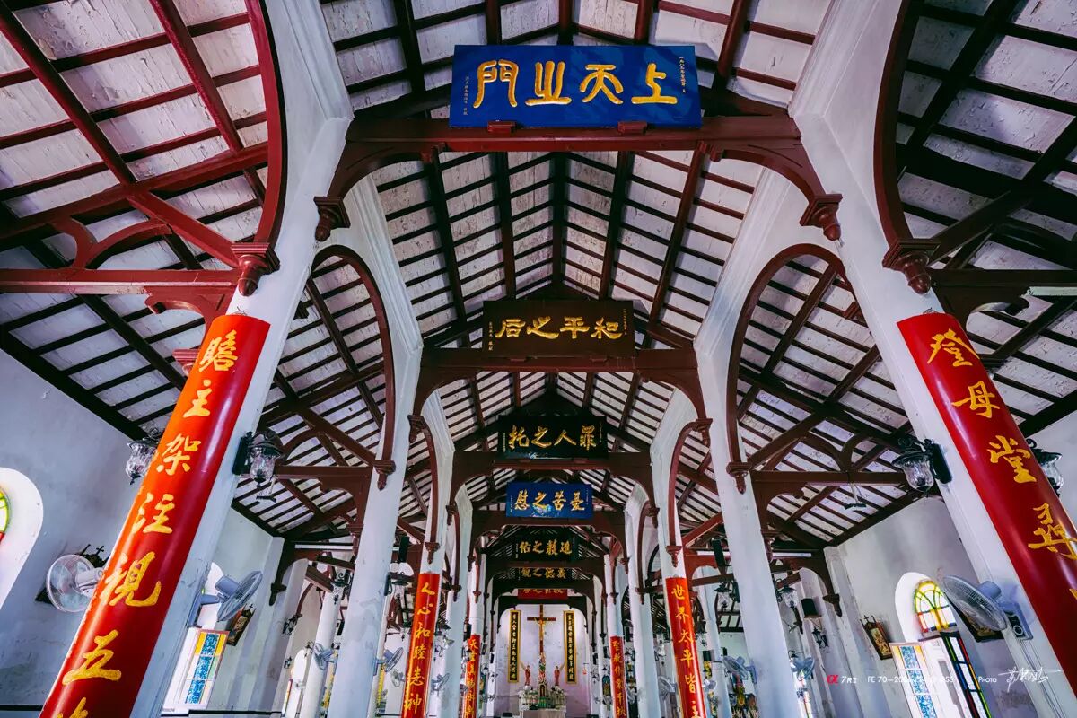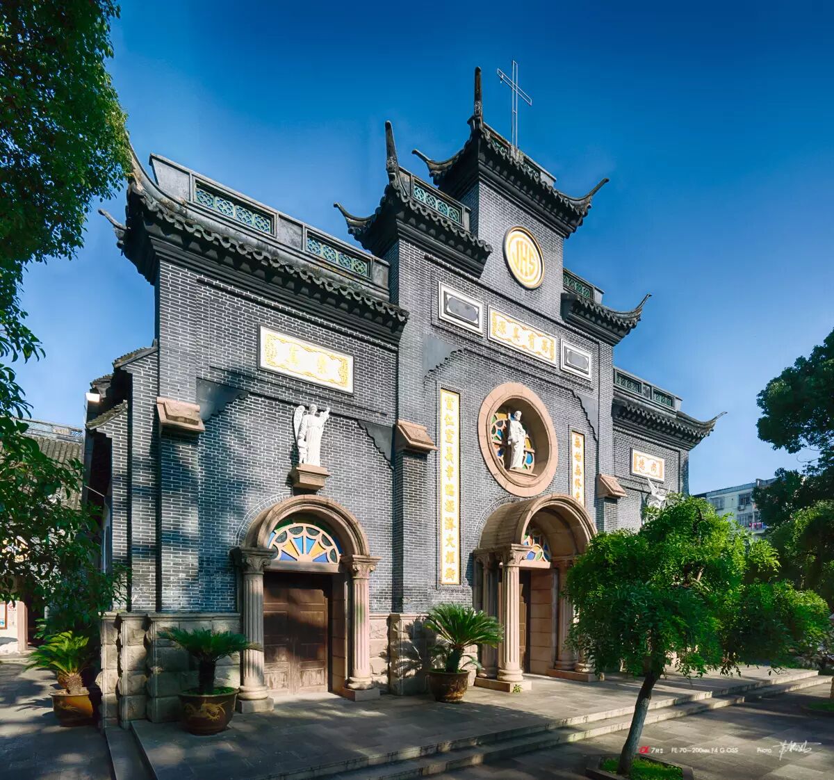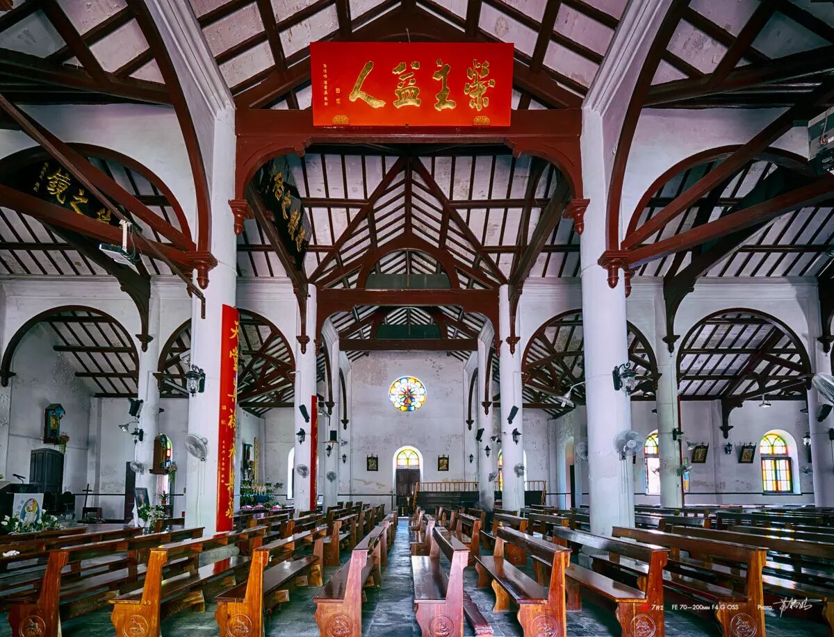 它藏在三香路上不起眼的小巷中,你无从想象在一堆饭店的背后竟有这样一座宏伟的基督建筑。