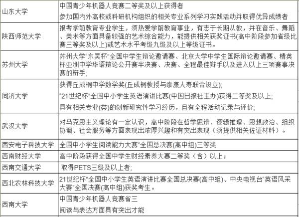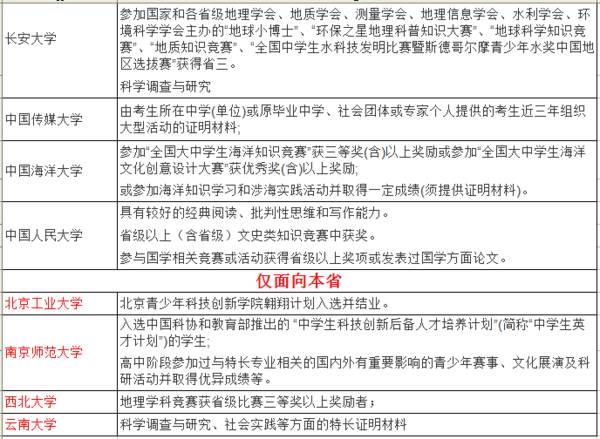 南京师范大学 | 以第一作者正式出版专著,高中阶段以第一作者或独立作者公开发表过有一定影响的学术论文 |