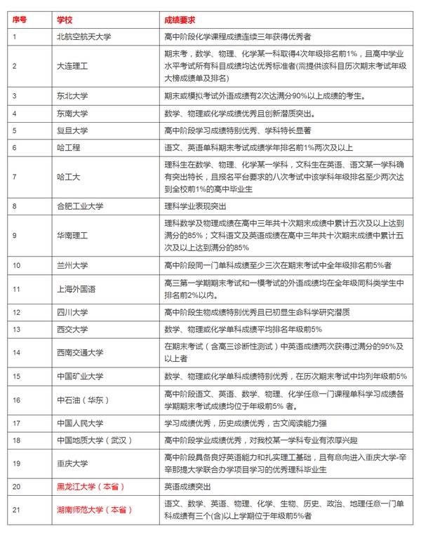 2016年21所院校明确给出单科成绩优秀可报名的条件。