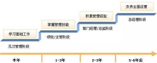 100名优秀毕业生,分别安排至人力资源部、财务部、市场部、餐饮部和房务部等主要部门工作,完成从见习管理员到领班、主管、部门经理/总监的职业发展。