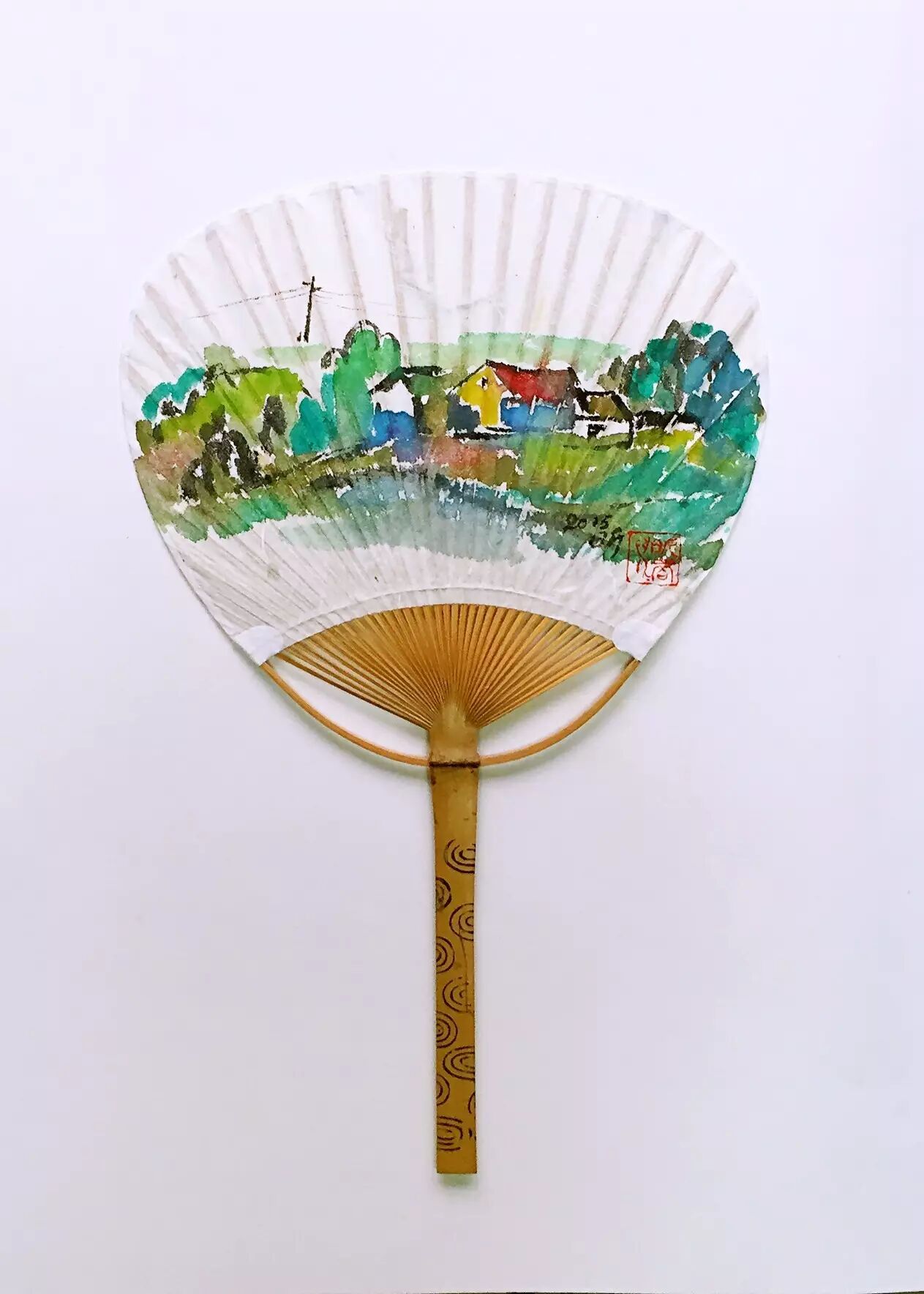 折扇的主题通常由一幅主题鲜明的扇面引发,寄托着扇主人的追求和情操。徐昕是一个立志开拓的画家,在美的追寻中不断探寻自己的内心。其清新梦幻的绘画气质在一个小小的扇面上畅快的表现出来。