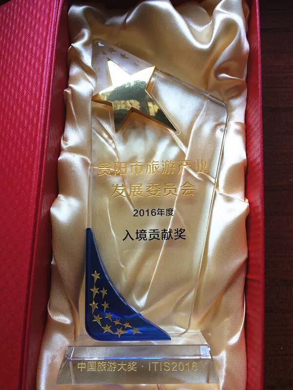 在品橙·2016中国旅游大奖颁奖典礼上,贵阳市旅游产业发展委获得品橙·2016中国旅游大奖·入境贡献奖。与贵阳市同获此项奖项的还有四川省旅发委、云南省旅发委、苏州市旅游局、拉萨市旅游局、来吧旅行网。