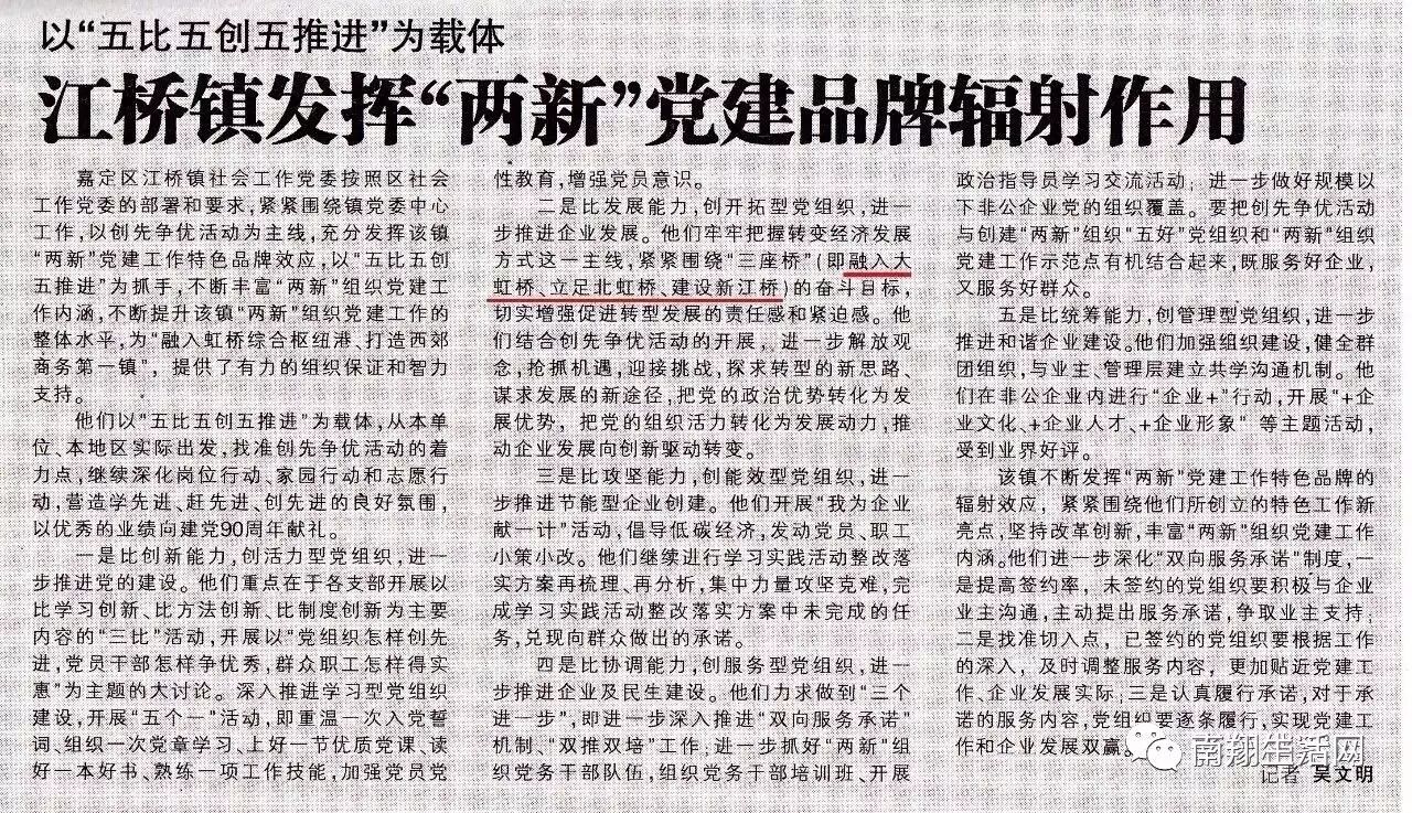 ▍作为嘉定区与上海市中心城区接壤的最前沿江桥镇,位于嘉定、普陀、闵行区三区交汇处,其西接上海国际汽车城,北沿旅游胜地南翔,东与普陀区交接,南连虹桥综合交通枢纽。江桥是嘉定区第一重镇,如今它又有了一个新名字——人们称它为北虹桥。它东至上海外环路,西至嘉闵高架路,北至京沪高速,南至吴淞江,面积达12.96平方公里,它就是虹桥商务区的拓展区。今天我们就来聊聊它的前世今生...