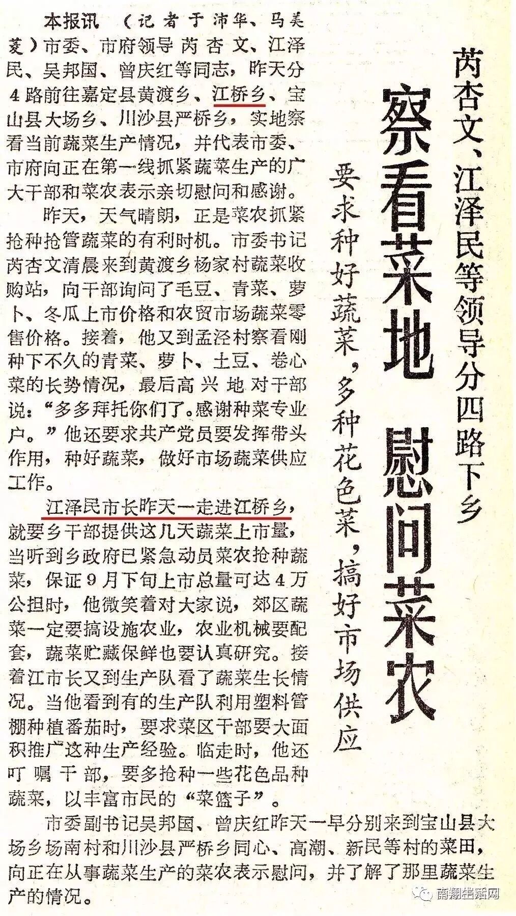 1991年7月11日,时任上海市委书记来江桥视察蔬菜生产工作。