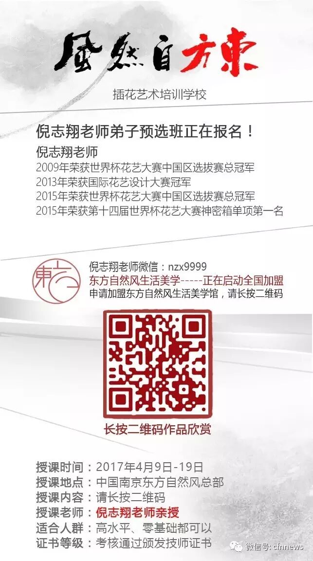 去年刷屏的“花校之夜”专场花艺表演,今年以网上票选形式确定表演花校,短短一周吸引了国内11家花艺名校参与。北京鹿石花艺、杭州良友花店商学院、沈阳曦月花艺培训学校、北京佩华花艺学院、昆明红日茗花秀花艺培训学校、北京东方撒艺传统插花艺术培训学校、苏州壹菲花艺学校、南京东方自然风花艺学校、深圳多彩国际花艺学院、上海优尼花院、北京花艺在线,分别以各具优势的图文,共同在花店花艺专刊公众号亮相,等待大众投票。这一活动报名截止日期为4月5日。