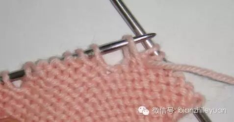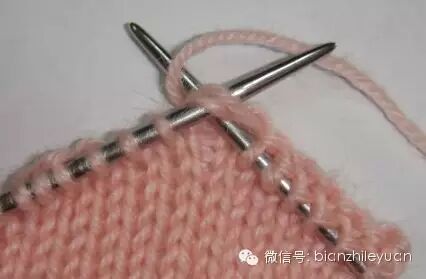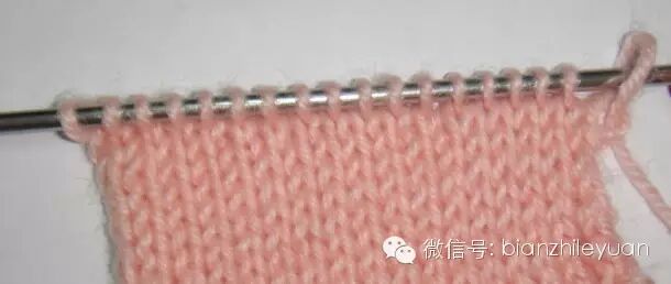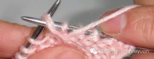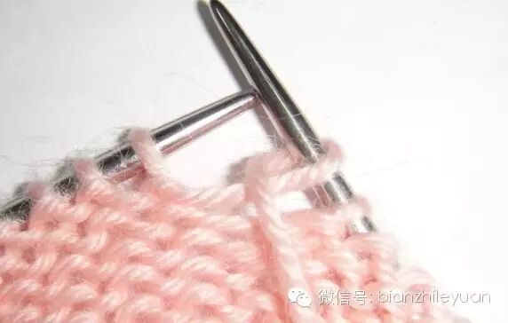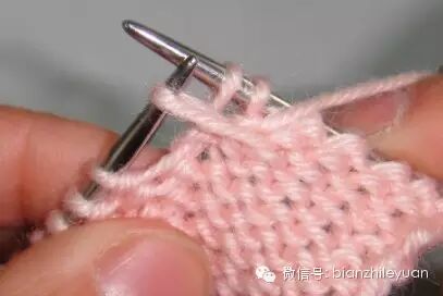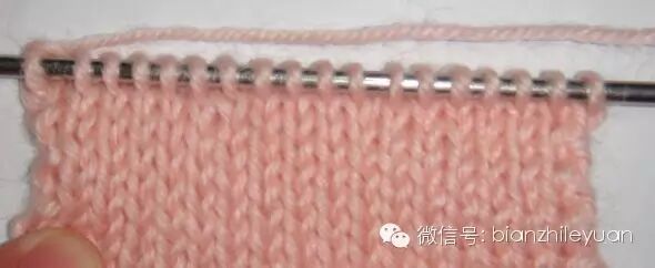 第三行:正面 织图上第2步,先把线挂针上(把线放右针前直接从左针上滑下一针,不要圈线),再平滑下一针,接着织第2针,织到头