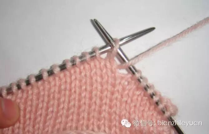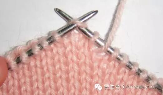 反面消行图1:左侧针上第1针为挂线针,这针要与左针上第二针交换位置