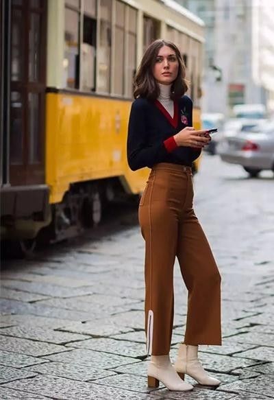 针织毛衣加阔腿裤