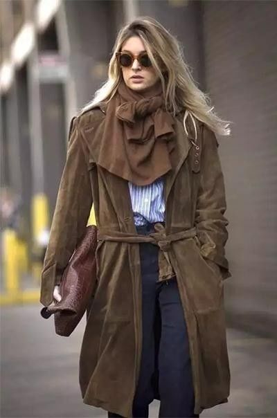 省围巾钱的同时使整套look看起来保暖又风趣~