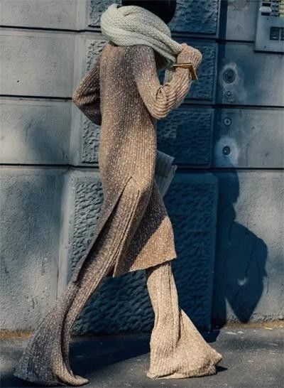 一身裸色系的针织搭配独特却又不会太刻意