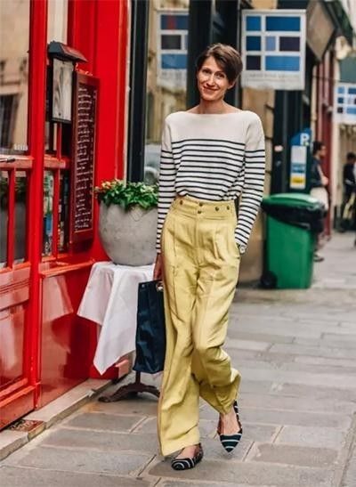 上衣与鞋子的条纹元素呼应,