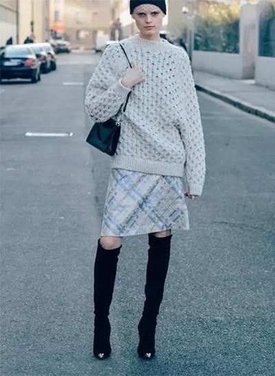 搭配过膝长靴,为短裙的搭配创造更多可能
