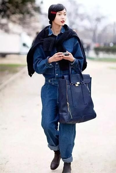 一身牛仔连体工装,穿出了她的鬼马范