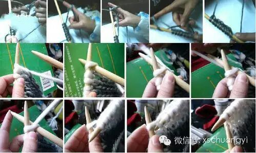 花样织法 交叉罗纹针(4针倍数加2针) 第一行:(正面)反复织“2针上,2针下”,最后剩2针时都织上针 第二行:反复织“2针下,2针上”,最后剩2针时都织下针 第三行:“2针上,右交叉(即向下2针并1针但不从棒针上脱下,再对第1针织下针,然后才把这2针从棒针上脱下)”,重复以上针法,最后剩2针织上针。 第四行:同第二行织法相同 重复上面四行的织法就是交叉罗纹针