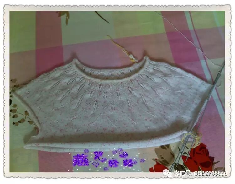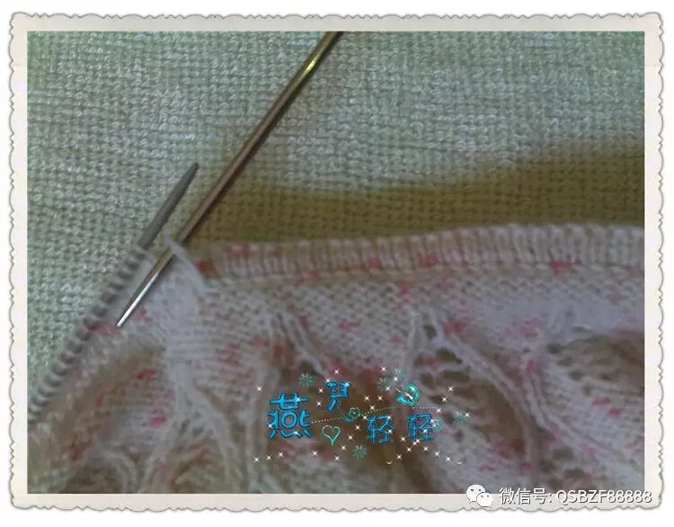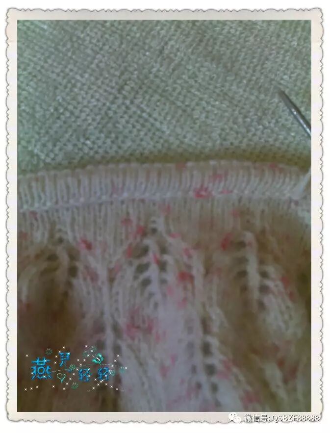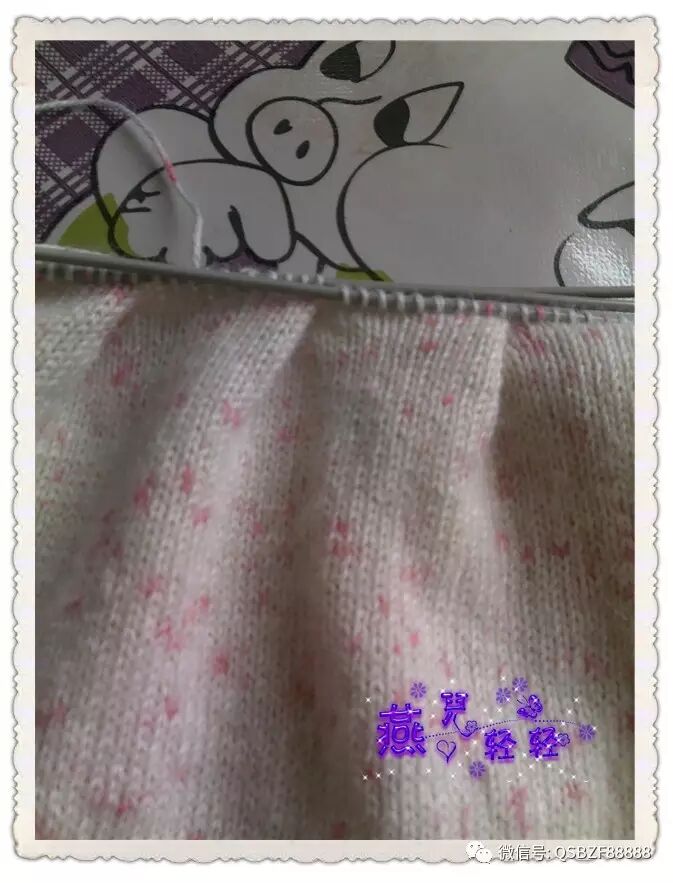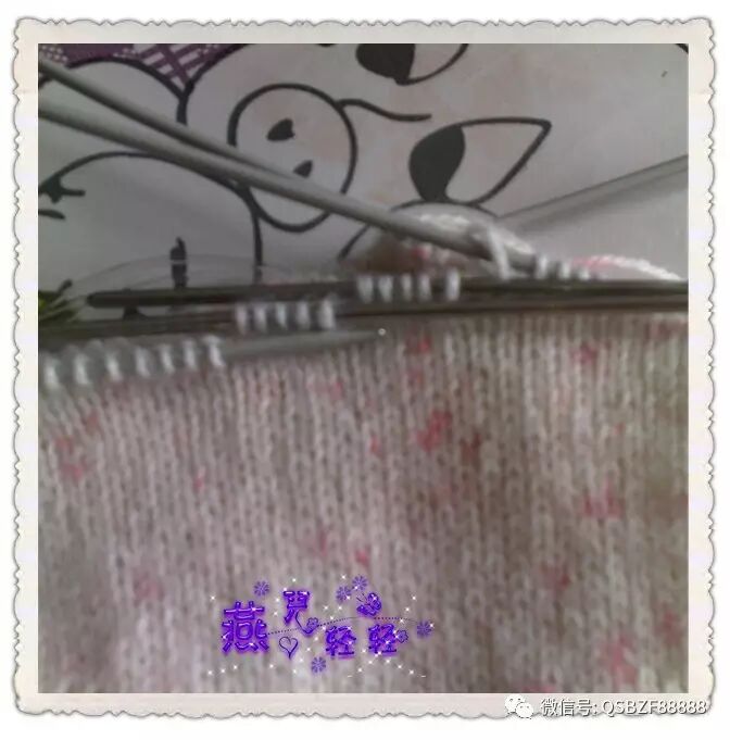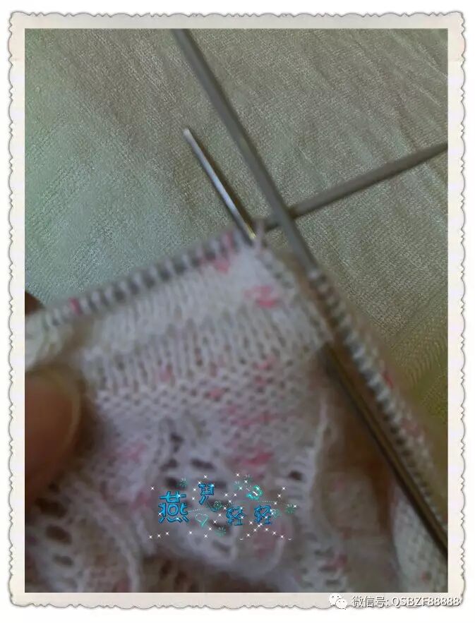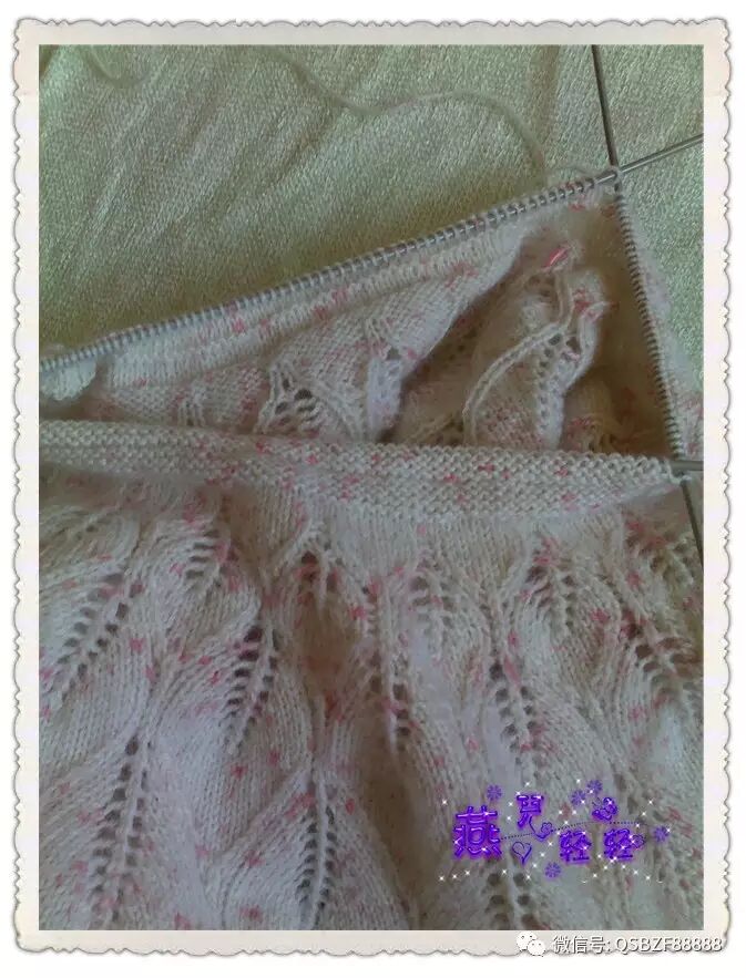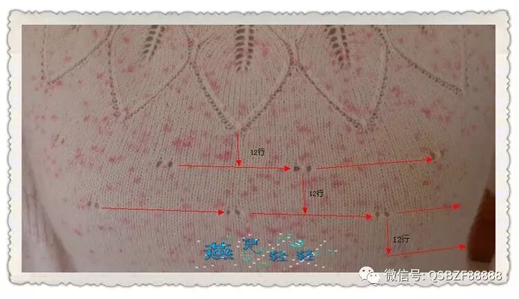 9针一个花样,领口起活头180针按照图解往下织,76行的花样织完针数为480针 。片样显示大约20行是一寸的高度,因此往下继续编织36行,每12行均匀加针一次,第一次加20针,第二次加40针,圆肩部分织完的总针数为540针。以下图片是加针过程: