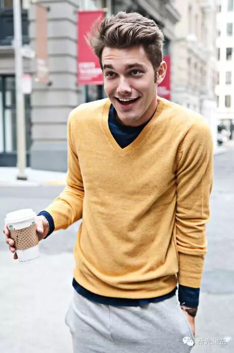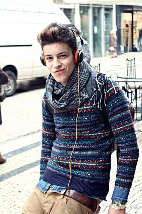 这种款式的套头毛衣其实不太适合形象太刚强的男士,反而适合柔软发质或卷曲发型的男士,并能凸显出男性的温柔。