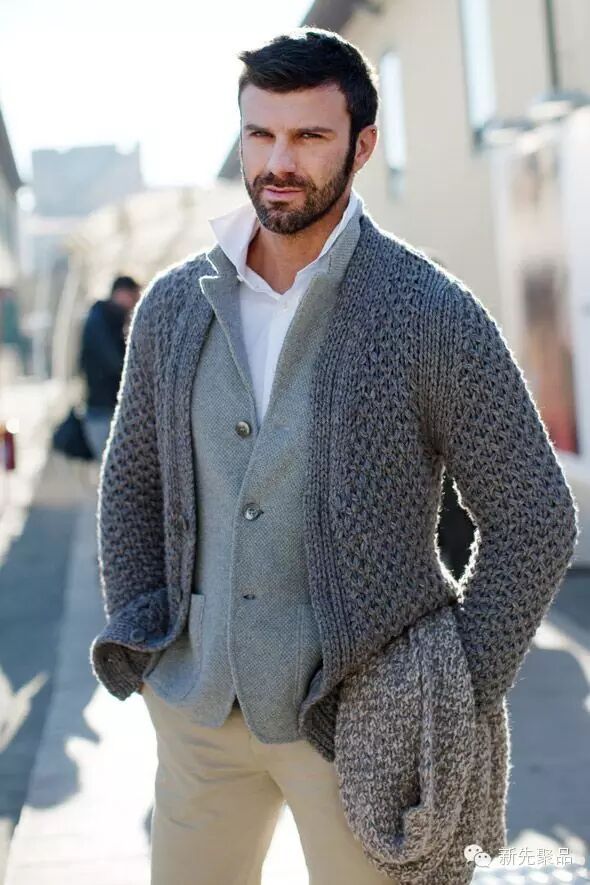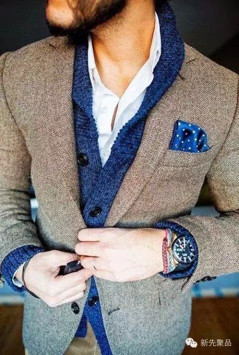 但更多的人还是比较好驾驭单穿时的它,在15度以上的天气中,内搭一件基础打底衫就很显品味。递进的颜色最显儒雅,也会让人看着最舒服,如果没有递进色搭配也可以试试对色系。