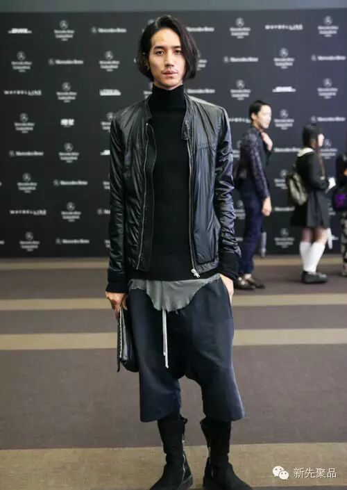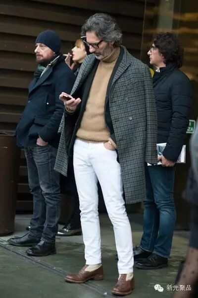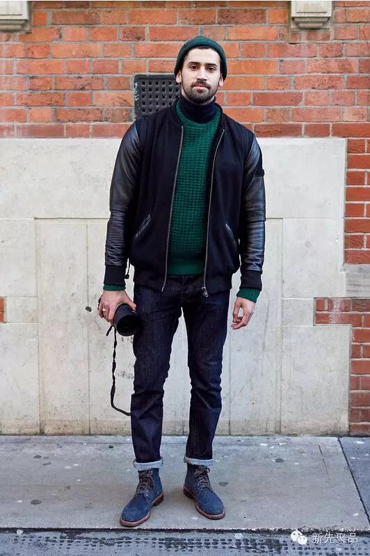 高领毛衣+机车夹克则能演绎出雅痞风。