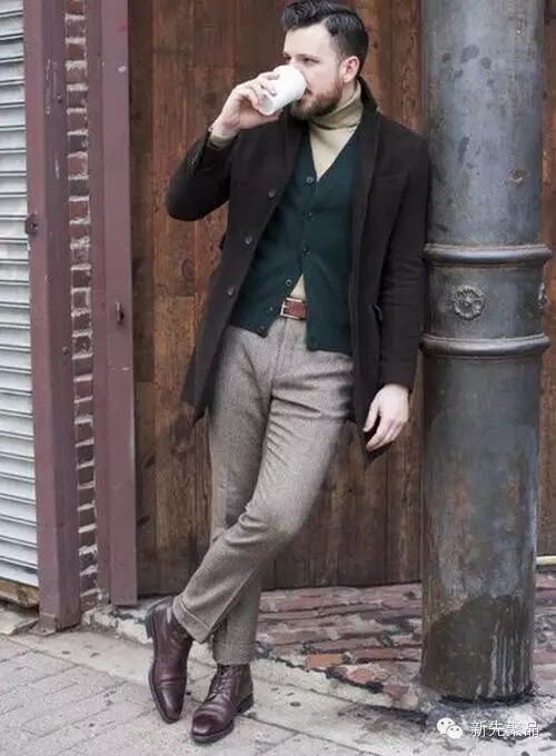若想搭配西装却怕看起来过于臃肿,可以尝试马甲针织衫,既保暖又绅士。