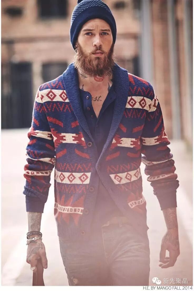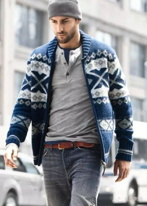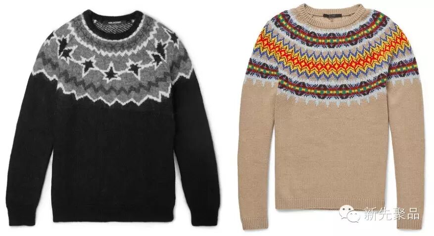 上面介绍过的开襟毛衣也有这样的款式,这种提花编织的毛衣能最大程度地将温暖性与视觉冲击力相结合,也最能给人随意而趣味的感受。