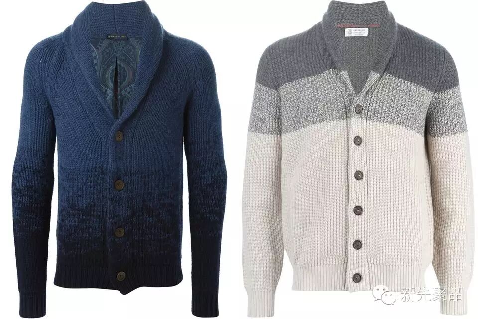 如果想将开襟毛衣穿高级,给人一种稳重的绅士感觉,那么就不如穿出渐变色,并选择细腻而轻柔的材质,如羊毛或羊绒。
