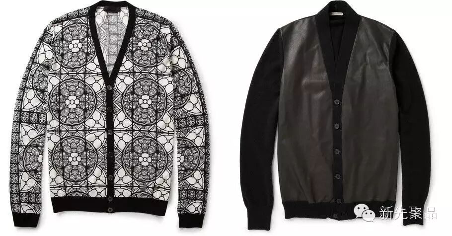 纯色基本款很多品牌都在卖,Alexander McQueen的羊毛开衫以及Bottega Veneta的皮革拼接开衫也很有意思。