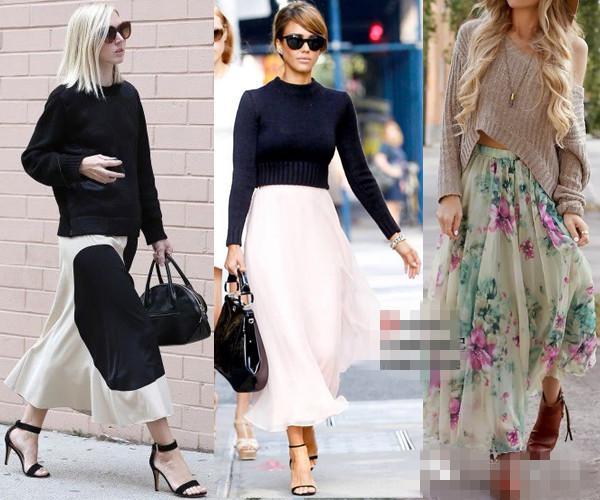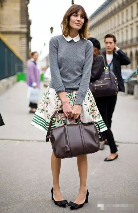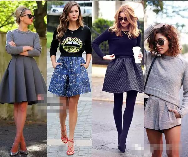 搭配蓬松的阔摆裙,短打毛衣或者将毛衣塞到裙子里,这样的打扮都能让你散发青春感~轻松营造的高腰线,显高显瘦的这一搭似乎每人必会。▲