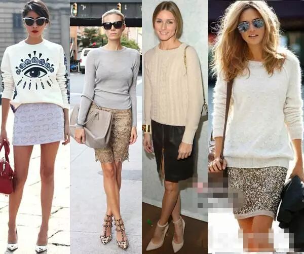 不过值得一提的是,宽大的毛衣搭配纤细的铅笔裙能搭出非常chic的显LOOK,如果你的铅笔裙能让你看起来显瘦,那么就算毛衣全部拉到外面,你的裙子是否是mini裙长度也没那么重要啦~▲