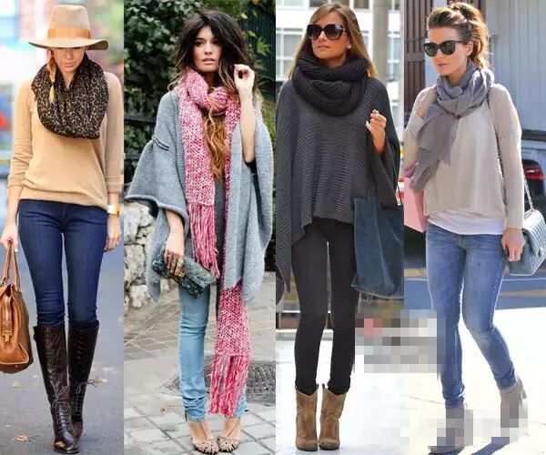 ④巧妙的利用围巾为你的纯色毛衣打造亮点,让搭配生动不乏味~▼