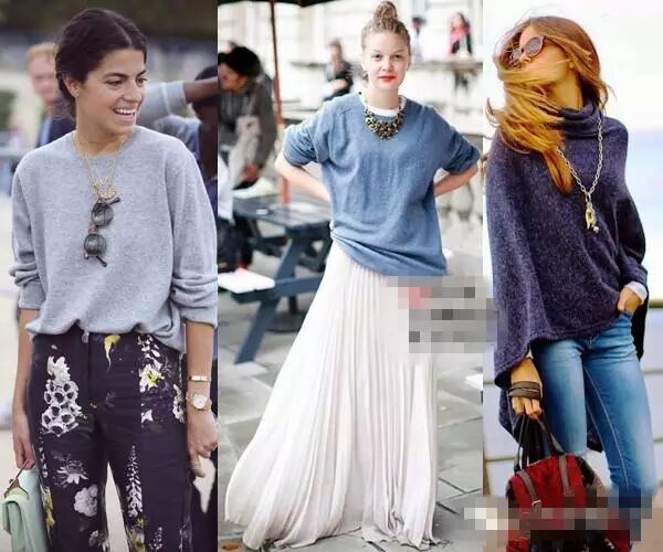 ②如果毛衣让你的脸看起来胖胖的,脖子短短的V型链是你的好帮手~但是,别和腰带外系的方法混用。▼