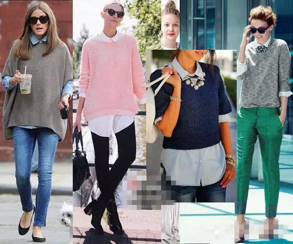 ③你可以用衬衫打底,让你的毛衣更加多样化,并且适当的优化你的V字部位。短毛衣+衬衫也是一种高腰线的打造方式。白衬衫和牛仔衬衫无敌好用,纯色的毛衣要想玩些花样,就小试你的复古、波点等花色衬衫吧~▼