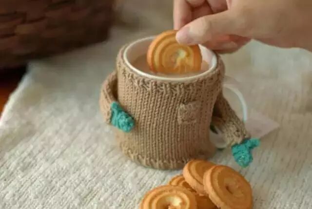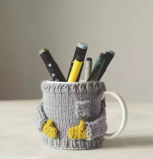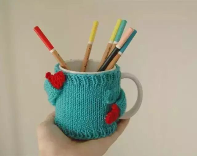 给杯子穿上手工编织的小毛衣,这是Esty店主 Nawanowe 带来的一个奇思妙想 ,店主开设了一家名为「杯子毛衣」的手工店,专为各种杯具量身创作小毛衣,比如有波尔卡圆点、条纹或纯色等等,花样百出,此外还有一些杯子有前置口袋,它可以放杂物,也可以用来放置店主手工制作的动物卡片,加上毛衣上的两个小手臂,简直要萌翻了。