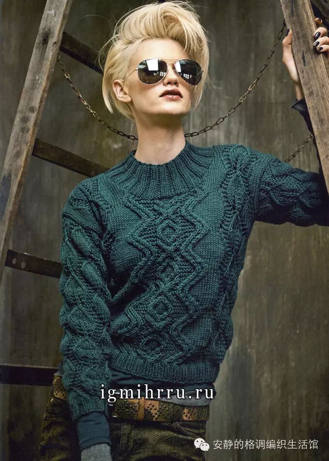 新款纯手工编织女式圆领麻花毛线毛衣