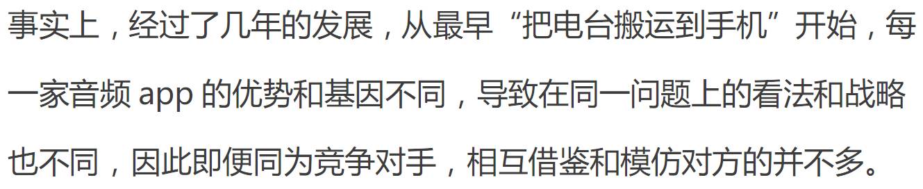 事实上,从几年前音频app高调进场,资本热捧,再到过去1~2年里同行业之间接近白热化的竞争:争夺版权、争夺主播,用户量和下载量、跑马圈地,甚至爆出了蜻蜓和喜马拉雅互相指责对方恶意刷榜、数据造假等事件,但背后则是,尽管各家都宣称用户过亿,但事实上音频并没有如预期的那样,成为视觉之后第二大的媒介,那些音频创业者孜孜不倦追求的从移动电台-UGC-PGC的所谓完善的音频全产业链的搭建,并没有如预期的那么快到来,而当潮水正在慢慢退去,资本的态度也变得游离和暧昧。