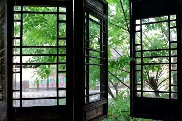 就在这透过窗棂的一片绿意里。