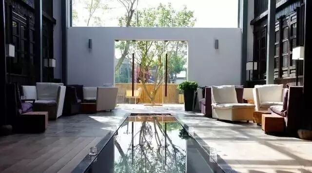 甚至还将一片黑瓦房顶变作大堂景观……