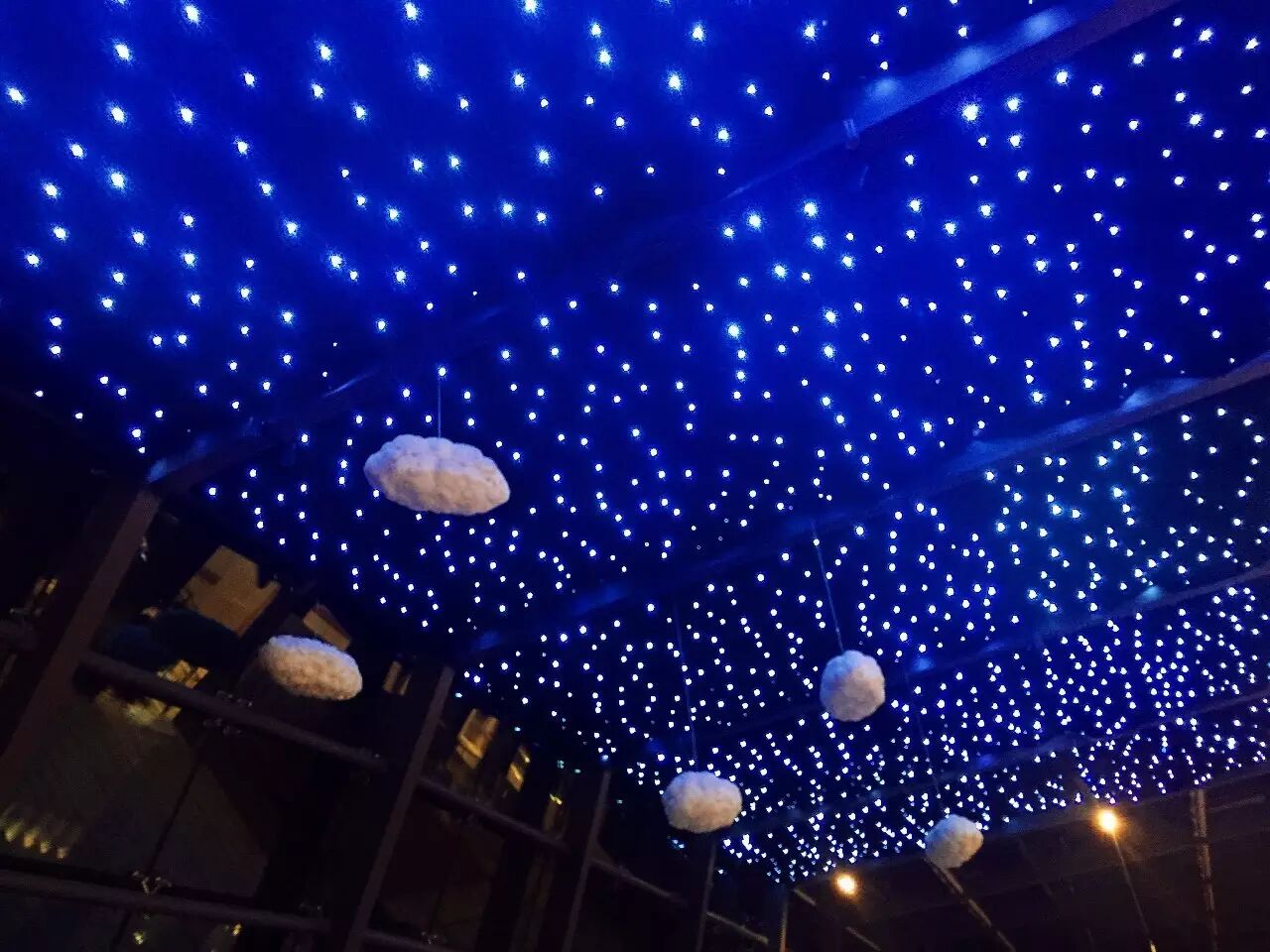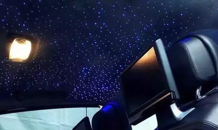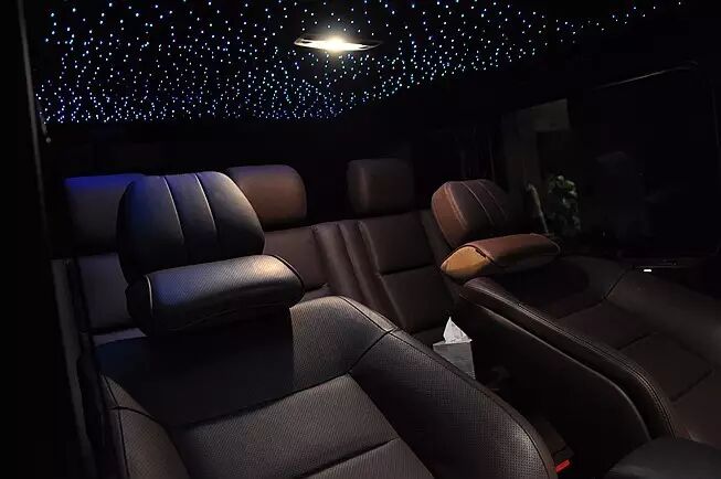车顶被改装成闪烁的星空,亮漆的车身搭配着闪烁的星空,此起彼伏,豪华梦幻。