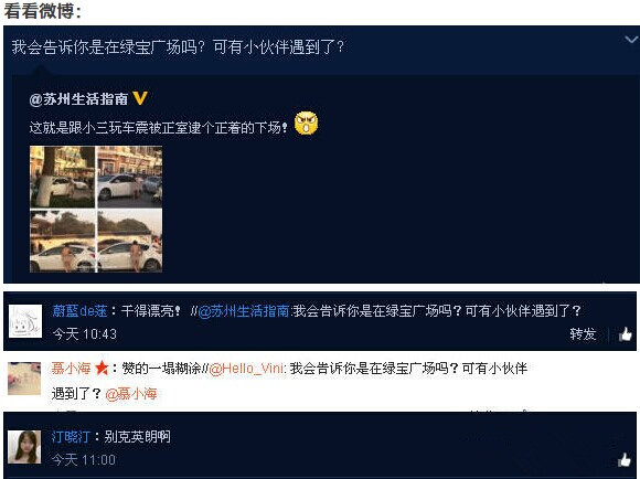 昨天有网友爆料,苏州高新区绿宝广场出了大事,小伙子绿宝偷情,还玩,被老婆拖出来关到门外,男主角……这就像是冬天里的一把火,点燃了网友的热情,一时间被各大论坛贴吧热议。