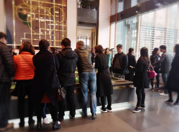 “我们大概上周的时候收到消息,今天一早就赶来了,没想到还是来晚了!你看,样板房队伍都要排到(售楼处)门口了,连沙盘区人都是满当当的。”一位一早就来的客户如是说到。