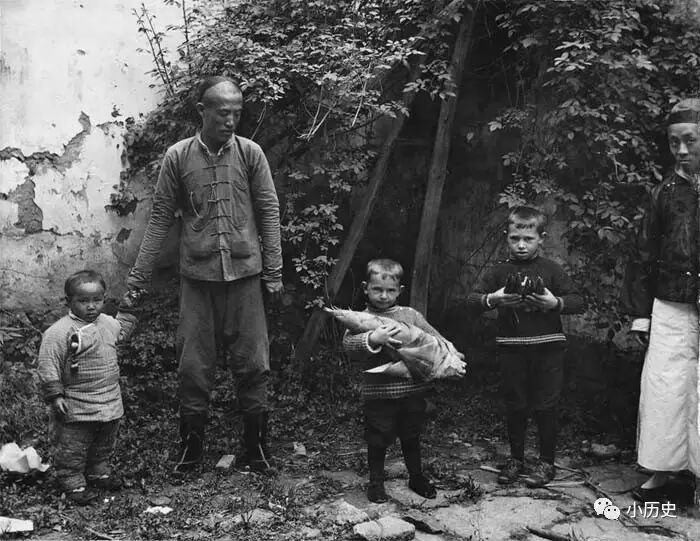 1908年4月20日,浙江,外国孩子抱着一个巨大的竹笋。