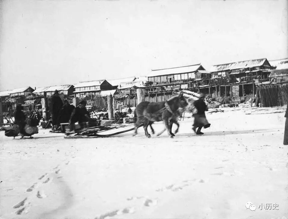 1907年1月1日,吉林,雪地上的马拉雪橇。