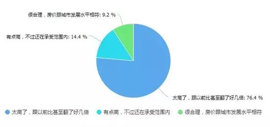 对于苏州目前的房价水平,有76.4%的网友认为房价太高,跟以前相比翻了好几倍,14.4%的网友认为苏州目前的房价有点高,不过还在承受的范围之内;9.2%的网友认为苏州目前的房价很合理,房价跟城市发展的水平相符。