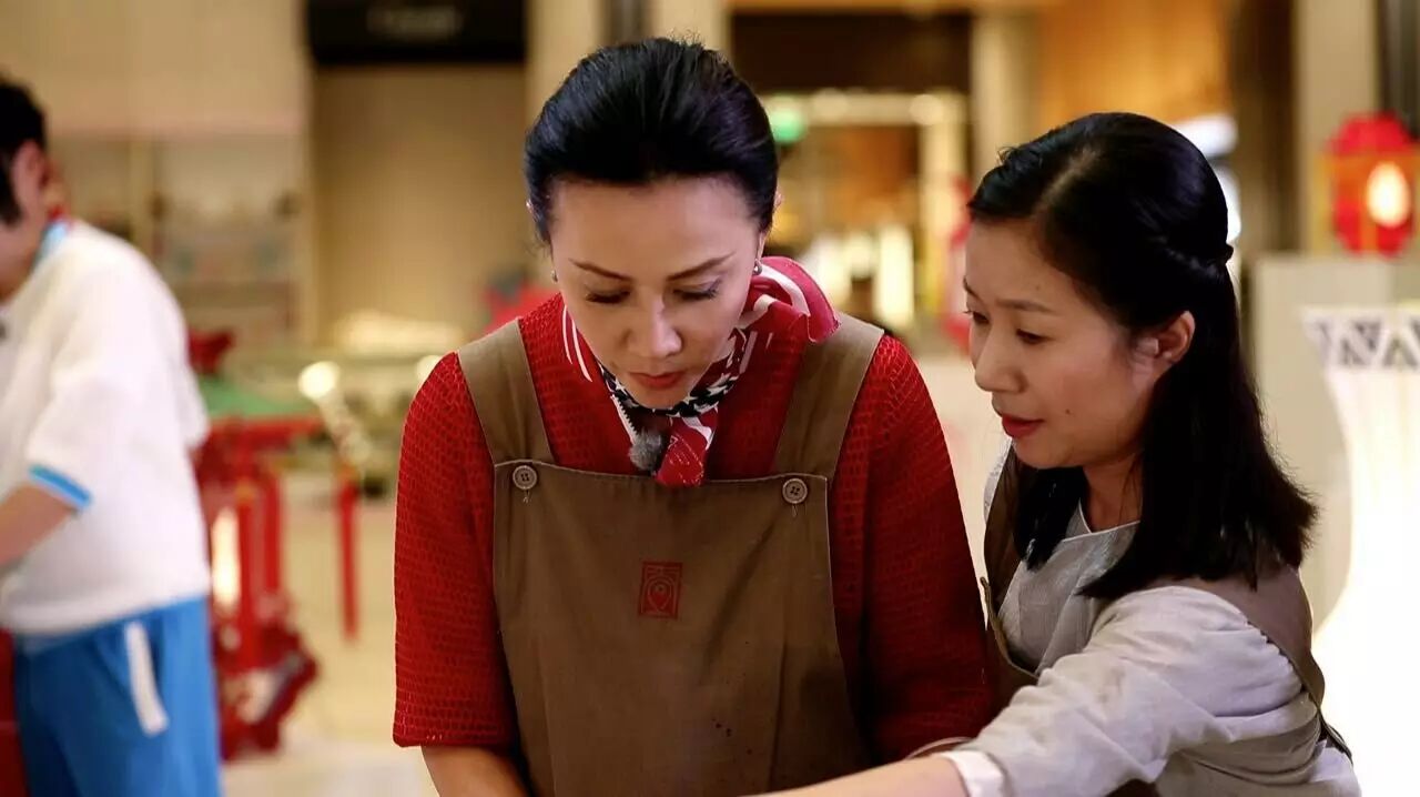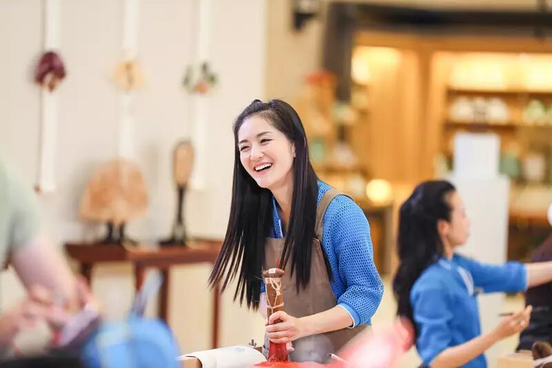 乔麦老师为刘嘉玲、谢娜进行工艺指导,嘉宾主持袁弘在一边观摩,每个人都很专注。