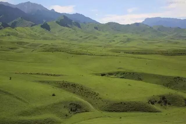 开阔的大山谷,层次极其丰富的绿,还有雪山鲜明的白,鹰盘旋而过,在高山坡吃草的成群的小白点小黑点小棕点。黄昏在山上眺望果子沟,山峰叠嶂,林海茫茫;半夜出来走走,寒意袭人,天上的星星,明亮动人。