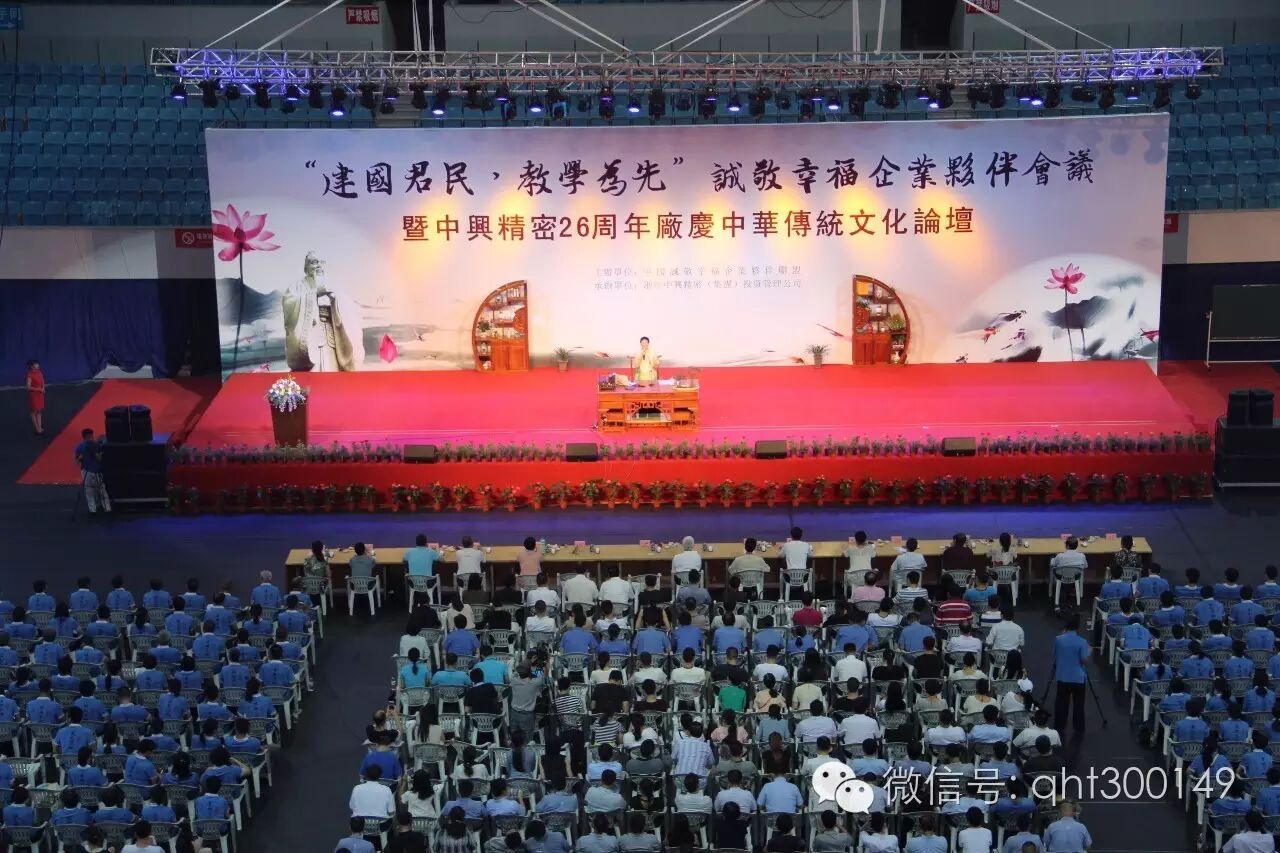 14日,中兴精密26周年厂庆中华传统文化论坛在慈溪市体育馆举行,慈溪市政府及各单位领导,蔡礼旭老师、李越老师,幸福企业伙伴和各企业,近3200人参加此次论坛。中兴精密张董在论坛上致辞,他说要带领全体中兴家人走一条懂孝道、知感恩、有仁爱心的幸福之路。