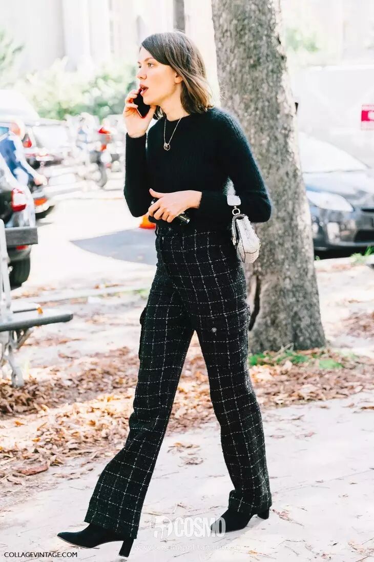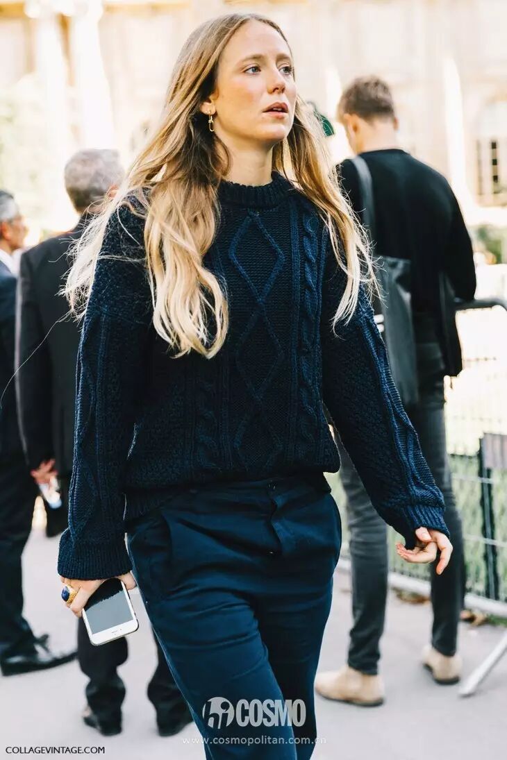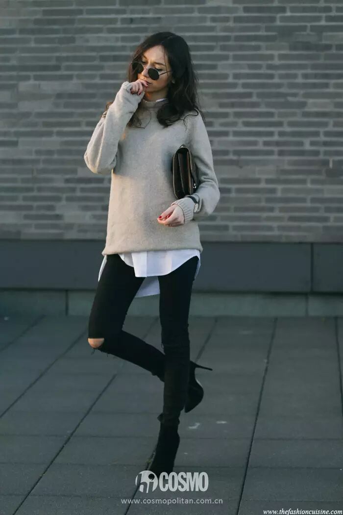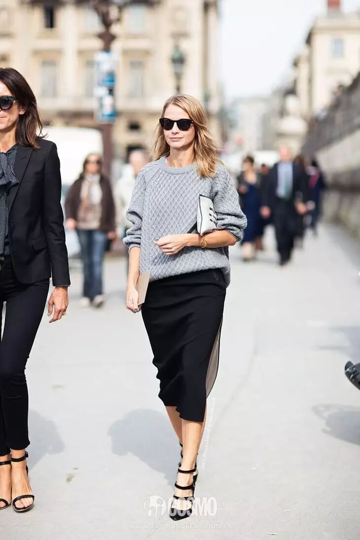 街拍中的圆领毛衣就更多啦,博主们用简单的款式搭配裤子裙子,怎么穿都美啊!