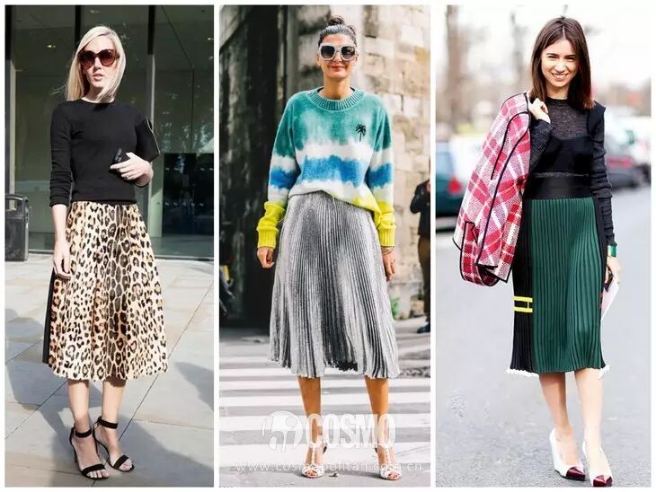 中长裙这一年火的呀,今年秋冬季又开始流行百褶中长裙。搭配毛衣时,千万记得要向杨幂小妖精一样把毛衣塞到裙子里。