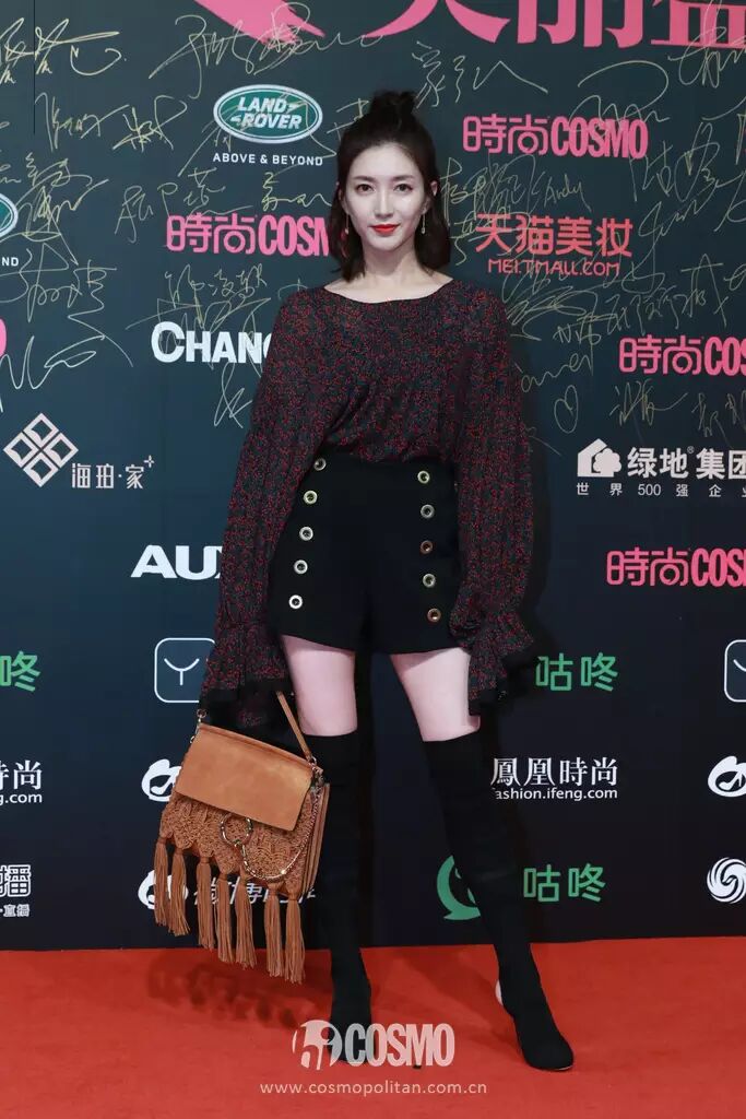 江疏影用高腰短裤搭配oversized毛衣,又是一个冬天秀腿的犯规选手。
