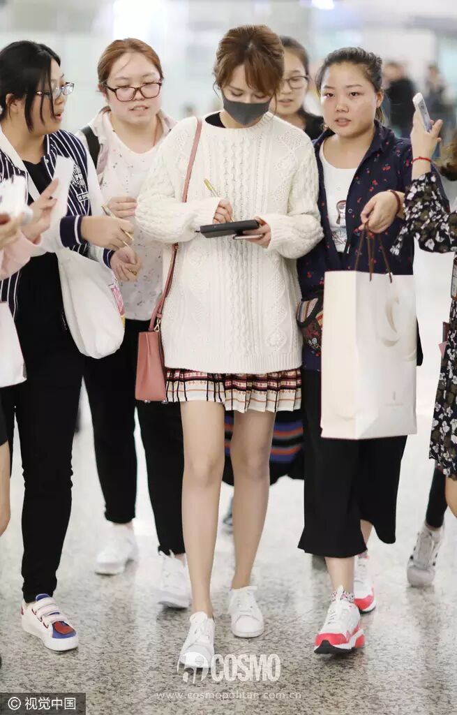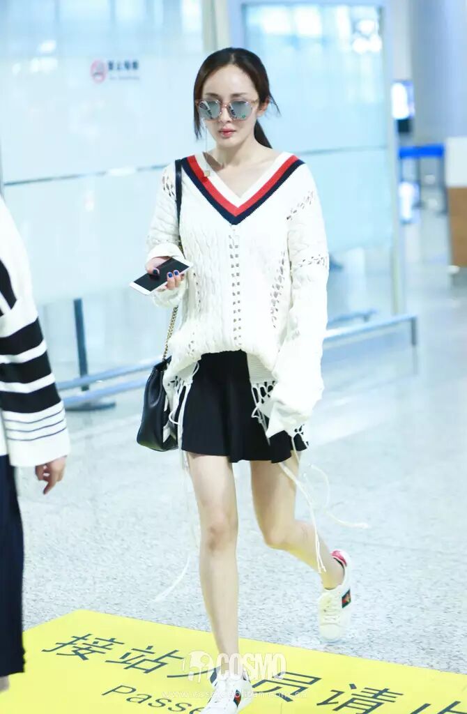 没错,这次又是杨幂,不晓得她中了什么毛衣的毒。机场照中,时不时就走在潮流尖端。oversized的毛衣直接当裙子穿,再来帽子和长袜,又酷又可爱。