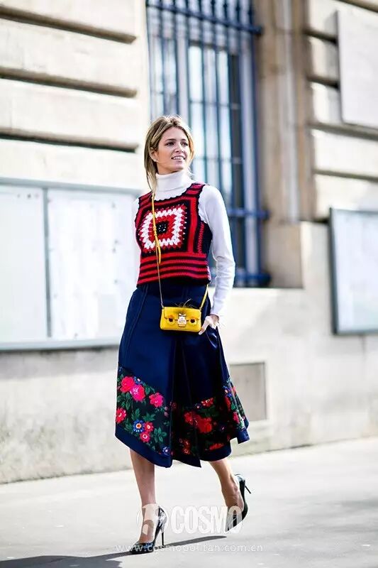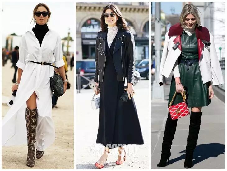 至于贴身高领毛衣搭配连衣裙的穿搭,前段时间也讲过,真正是保暖与时髦的不二选择呀!